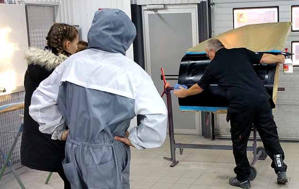 Två år senare, årskurs 7, får eleverna göra ett studiebesök hos oss på Bildepån i Varberg och testa på olika arbetsmoment i olika yrken.